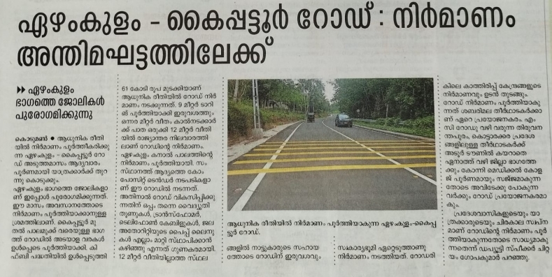 Ezhamkulam-Kaipattoor Road. Honouring Raji Sir for excellant standards in project execution by RMC