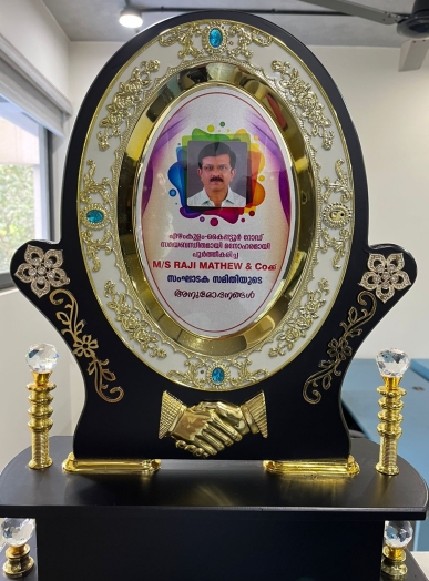 Honouring Raji Sir by PWD Minister PA Mohammed Riyas for the successful execution of Ezhamkulam Road